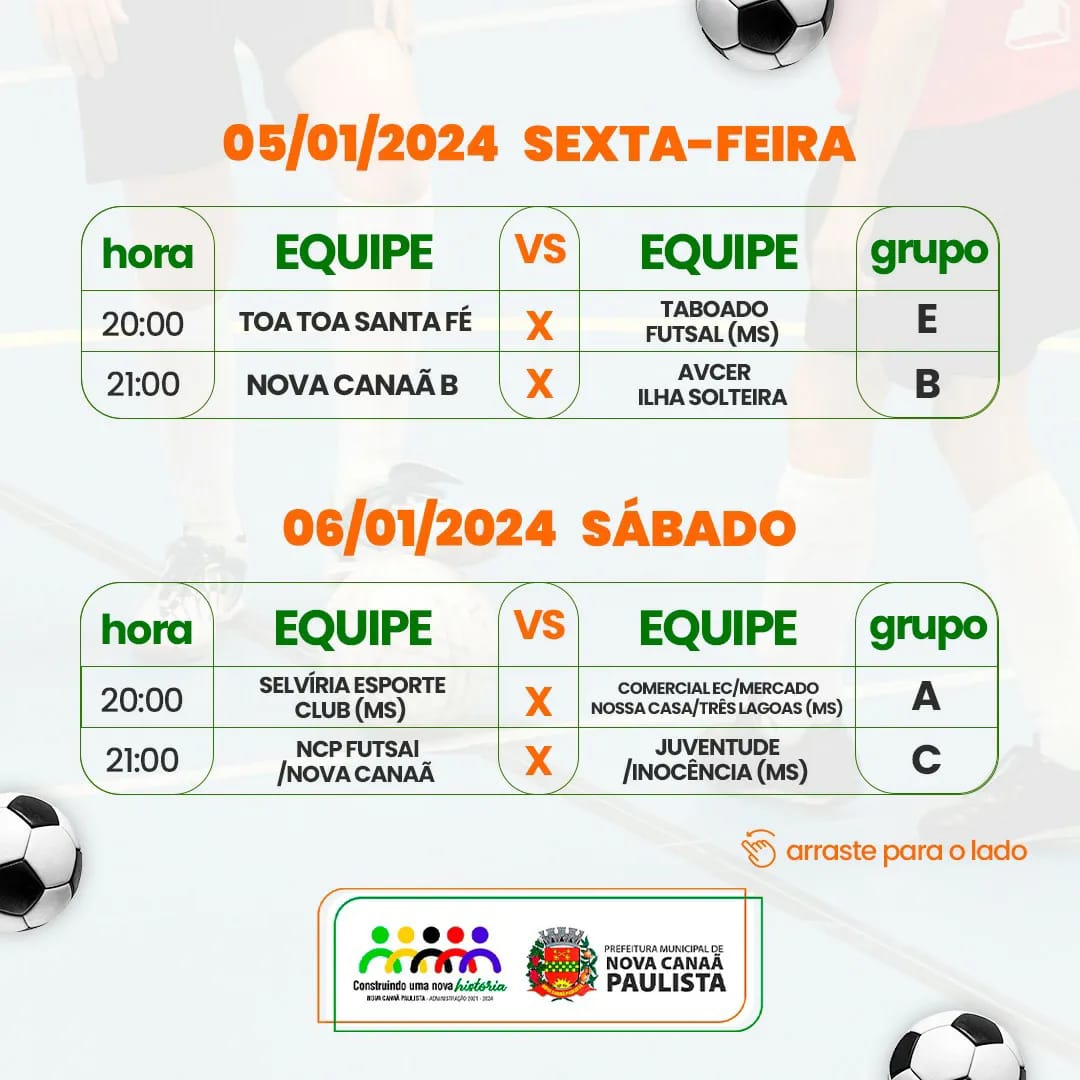 Prepare-se para torcer, vibrar e celebrar o esporte! O Campeonato Municipal de Futebol de Férias 2024 está chegando com jogos emocionantes nos dias 5 e 6 de janeiro, a partir das 20h. Venha fazer parte dessa festa esportiva!